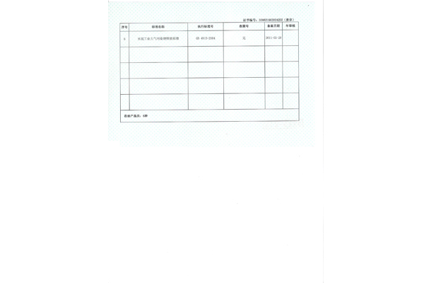 江蘇省企業產品執行標準證書